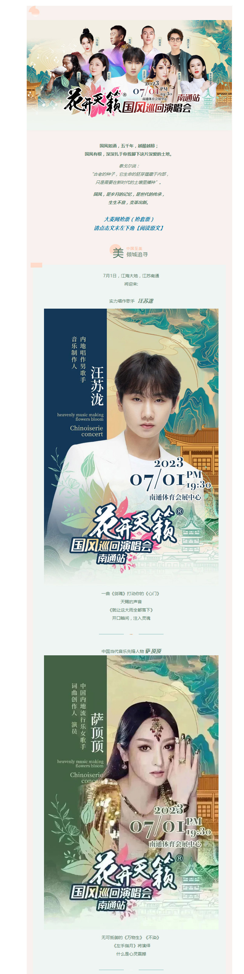 汪苏泷、萨顶顶等一众明星空降南通,开启唯美震撼级国风演唱会!